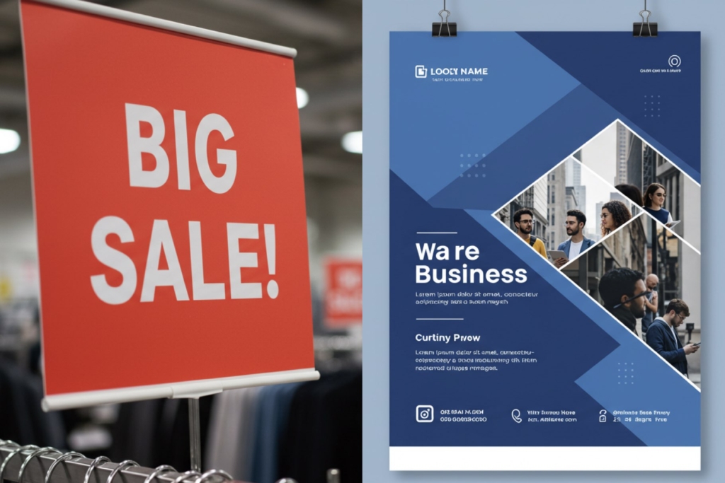 ここでは「看板広告」と「印刷広告」という2つの主要なオフライン広告について、その特徴やデザインポイントを整理します。