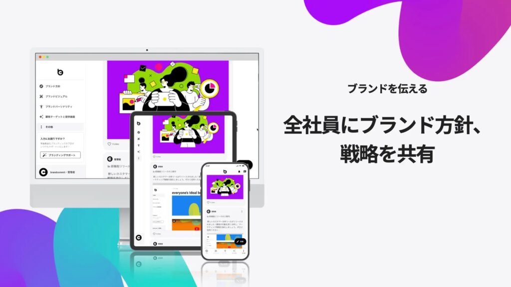 ブランドは、認知と共感が何より大事です。ブランドコミットではオンラインの強みを活かして従業員だけでなく、全てのステークホルダーと共有できます。