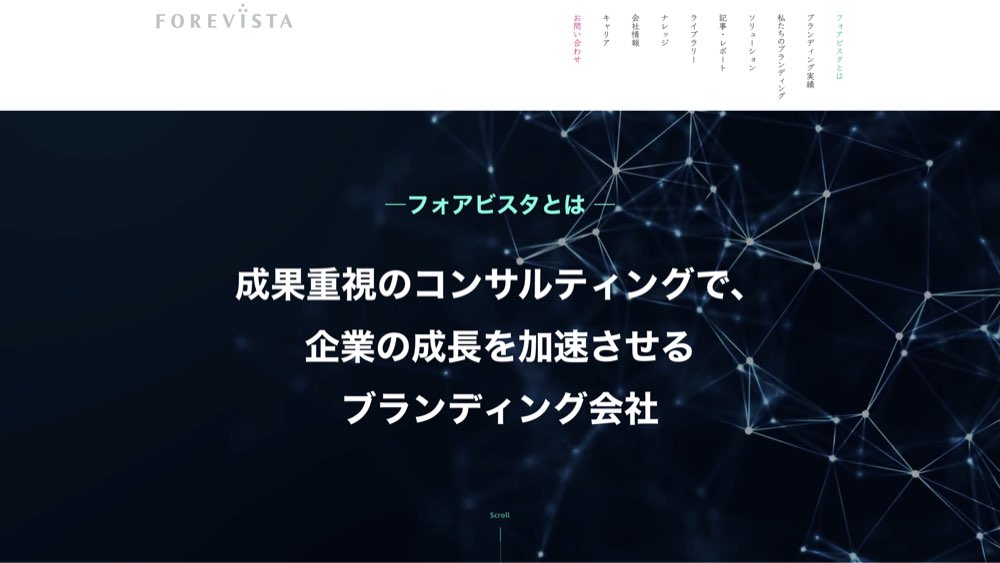 フォアビスタ株式会社は、経営戦略とクリエイティブを融合した本質的なブランドづくりに強みを持つブランドコンサルティング会社です。ブランドの立ち上げからリブランディング、成長・定着フェーズまで、企業の状況や課題に合わせた多面的なソリューションをワンストップで提供しています。