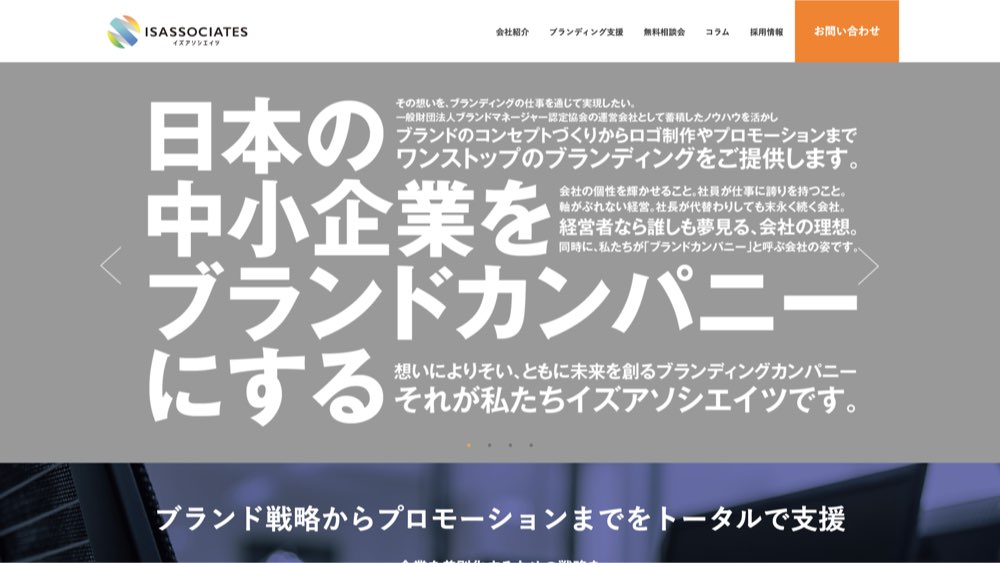 株式会社イズアソシエイツは、「ブランドを経営の中心に置く」アプローチで、中小企業から上場企業まで幅広いブランディングを支援しているコンサルティング会社です。MVVの明確化から、社内外への浸透、ブランド体験の設計まで、段階ごとに体系化されたプログラムを用意しています。