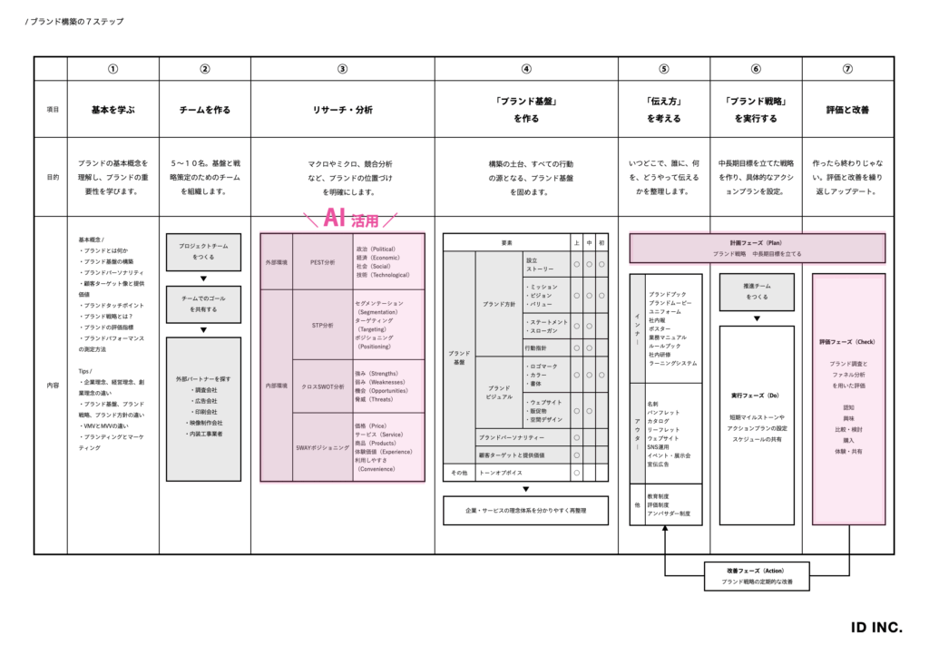 (※)「ブランド構築の7ステップ」は、ID INC.が策定したブランド構築の標準プロセスを示すフローチャートです。